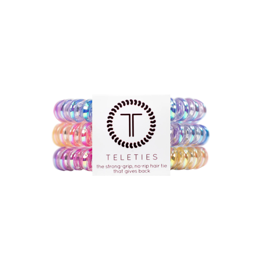 Refresh your look this season with TELETIES latest collection of Spring Hair Ties. Designed to bring shimmer, shine and color to every one of your Springtime looks. Whether you’re tying your hair up in a bun or adding a pop of color to your wrist, you’ll be reaching for these Spring Hair Ties for years to come! Sold in packs of three.