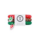 Naughty or Nice Small Hair Ties in Red and Green offer a strong grip without damage, doubling as a chic wrist accessory when not in use. Your new favorite hair essentials all year round. Strong grip, no rip design for all-day hold Doubles as a stylish bracelet Durable and waterproof for all occasions Gentle on hair—prevents breakage, headaches, and creases Sold in packs of three.