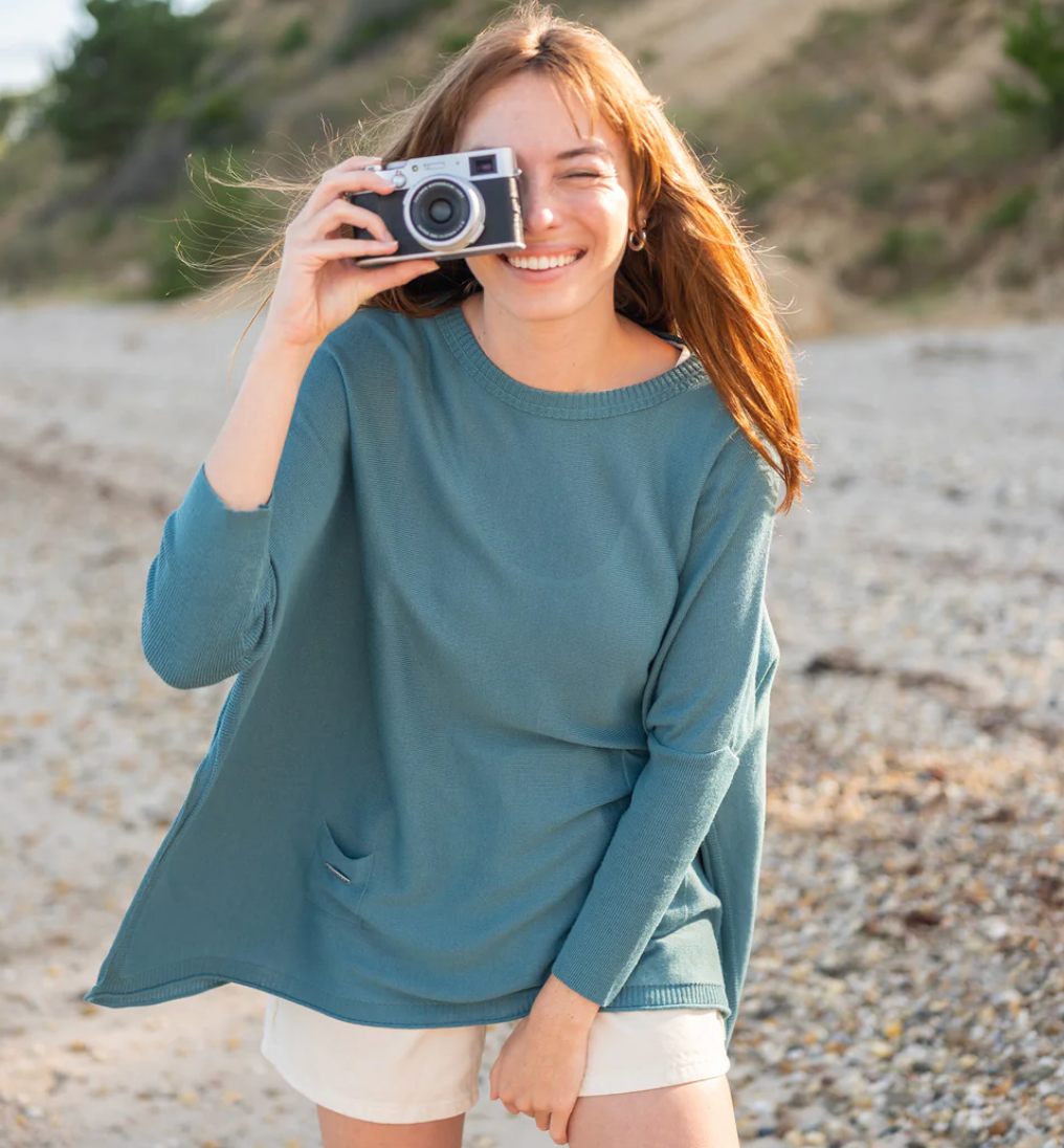 Our best-selling Catalina Sweater is the perfect partner for any occasion. Delicate pocket detailing, open sides, and a classic crewneck style. Just right for spring or summer layering or to throw in your carry-on for your next adventure.