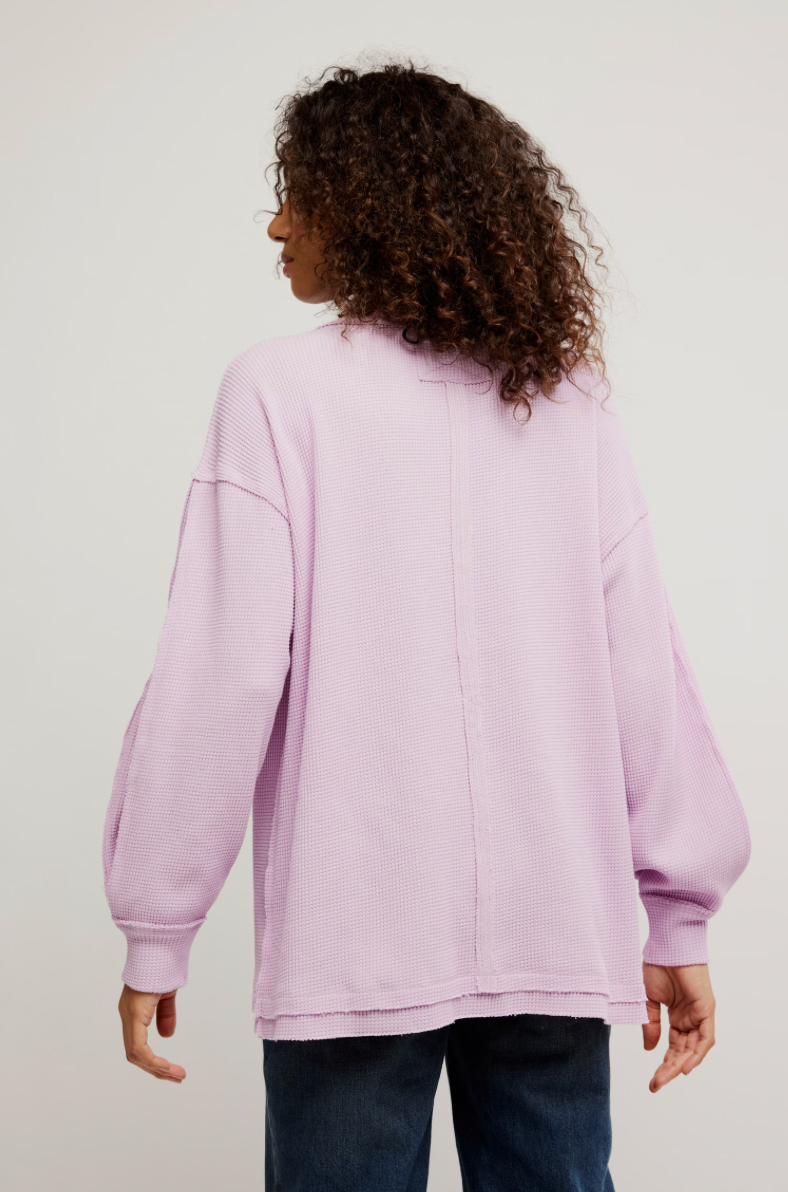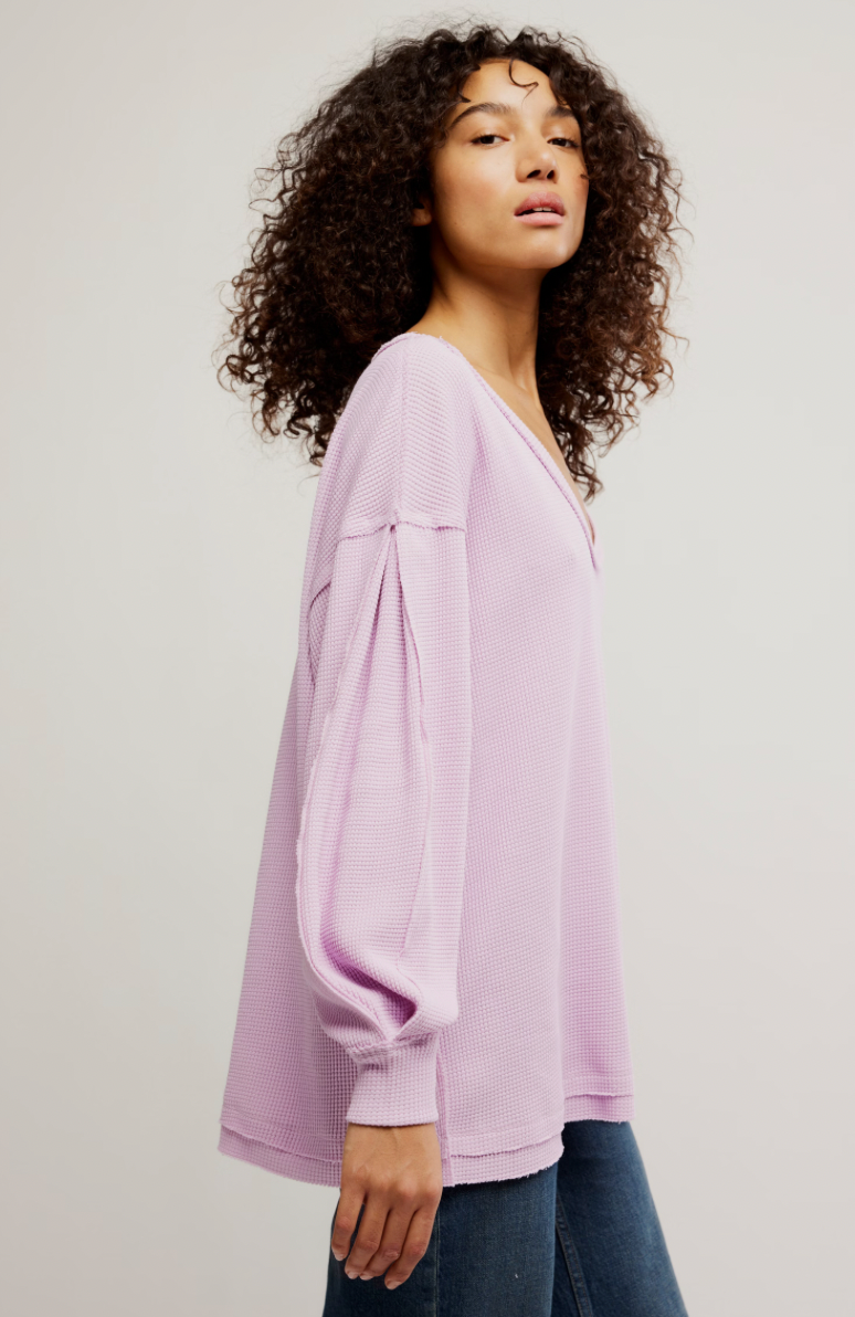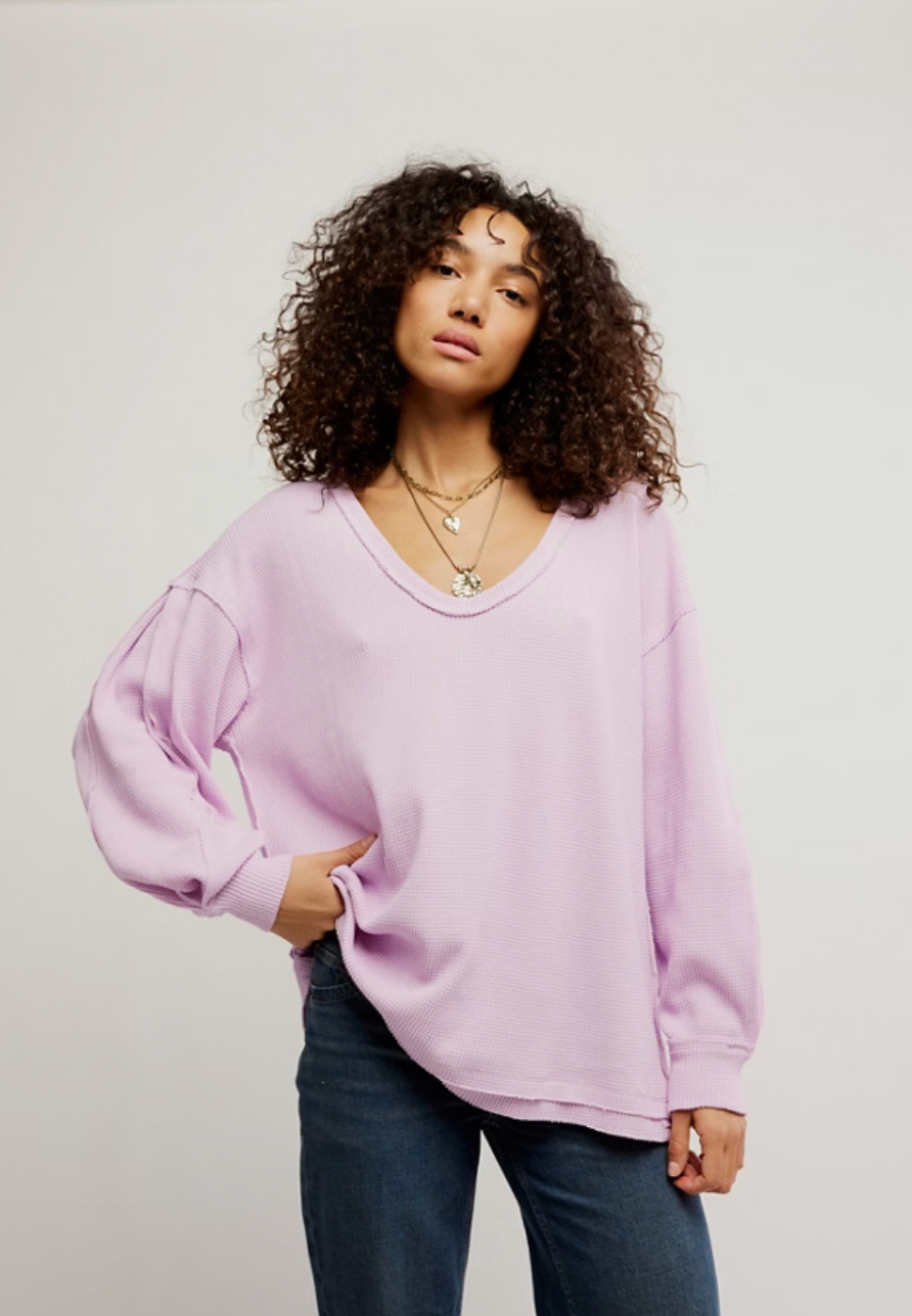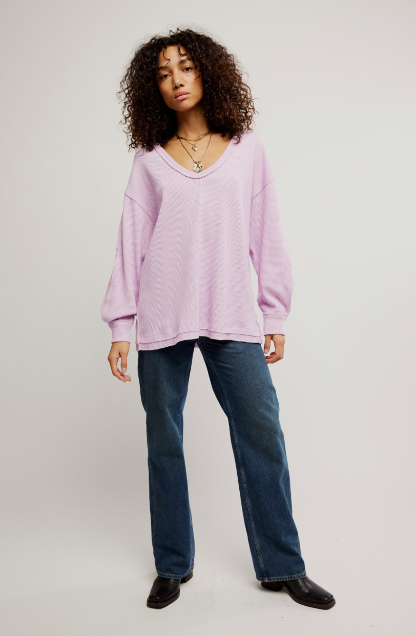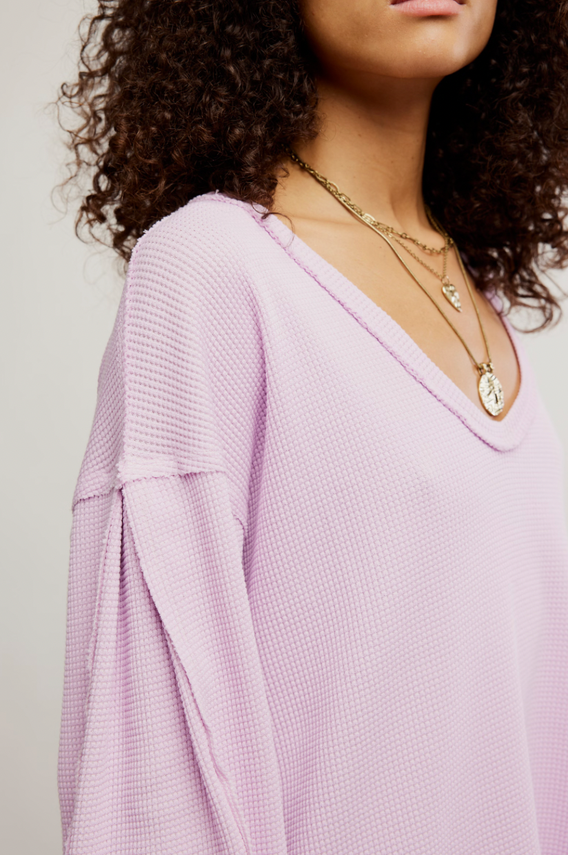 Cozy up in this oversized thermal from We The Free, featured in a waffle knit with a V-neckline and slouchy drop-shoulder sleeves for the perfect laidback look.