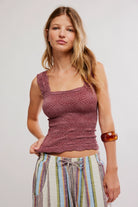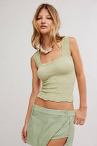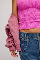 So sweet cami featured in a cropped, square-neck silhouette and jacquard floral design with statement lettuce-edge hemline.