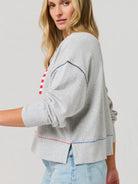 American Flag Relaxed Sweatshirt in grey, from Shiraleah, combines comfort and style. Crafted from pure cotton, it ensures breathability and durability. Easy to care for, it can be machine washed and tumble dried on low. This sweatshirt is more than just apparel, it's a part of Shiraleah's trend-driven lifestyle brand that focuses on the little things that make life special.