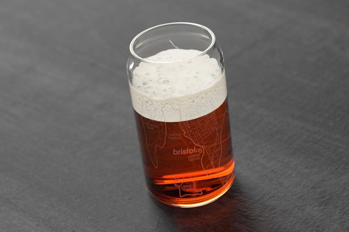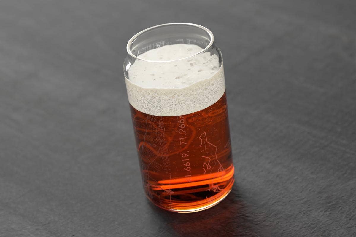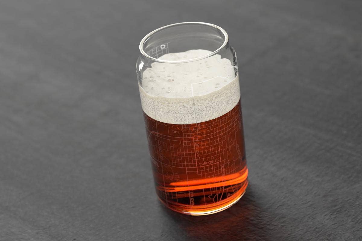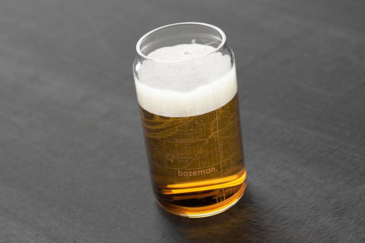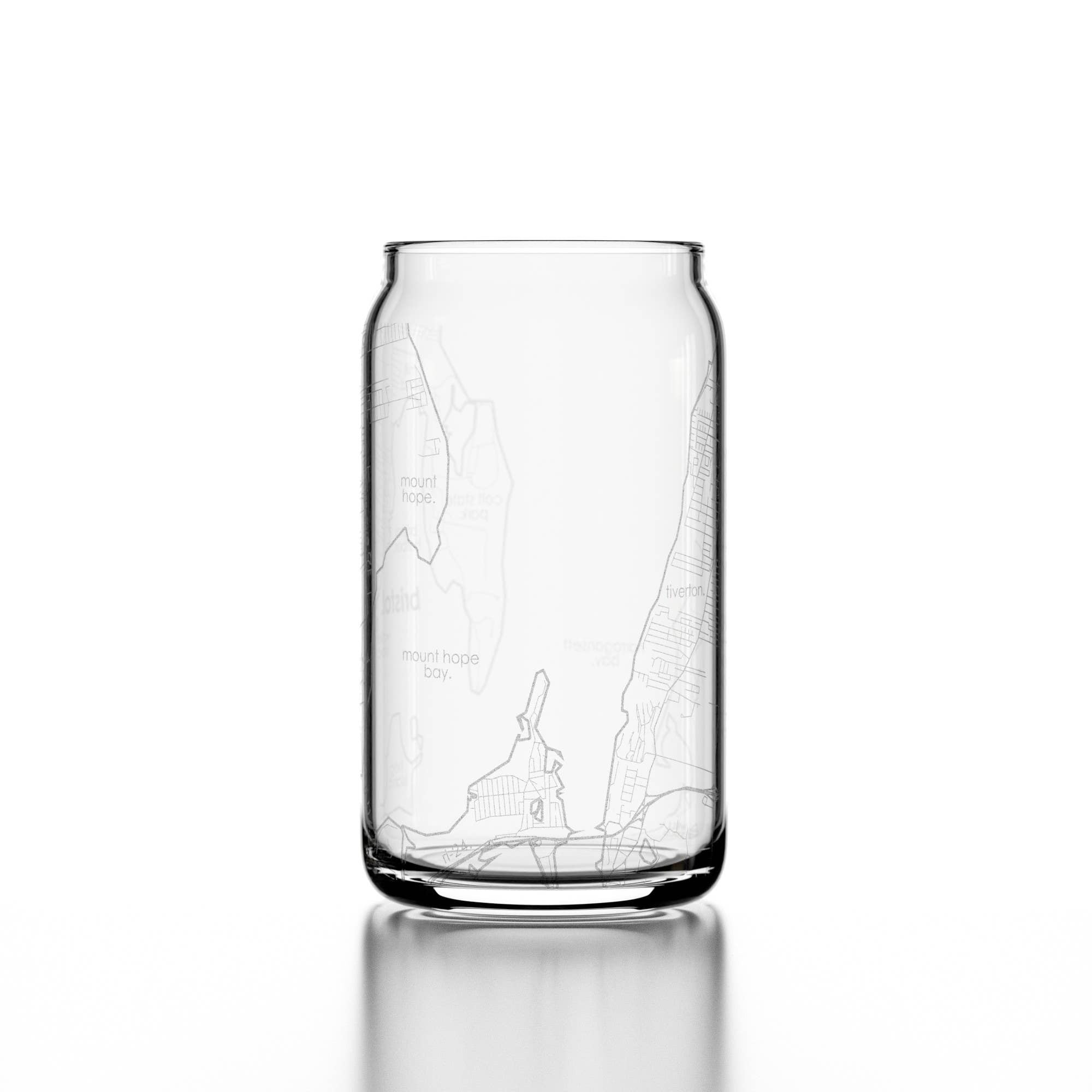 Our modern 16 oz Can Glass can be custom-made with a beautifully engraved map of ANY city or town in the U.S. In the classic profile shape of a beer/soda can it will truly transform your bar top.