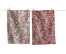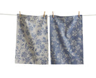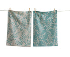 Set includes one discharge-printed satin weave and one dobby twill yarn-dyed cotton dishtowel with a leafy vine design from the Canyon Print collection. Pre-washed fabric with water-based inks for a soft touch. Hang loops.