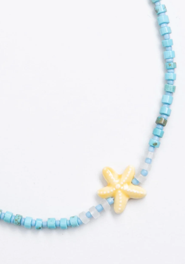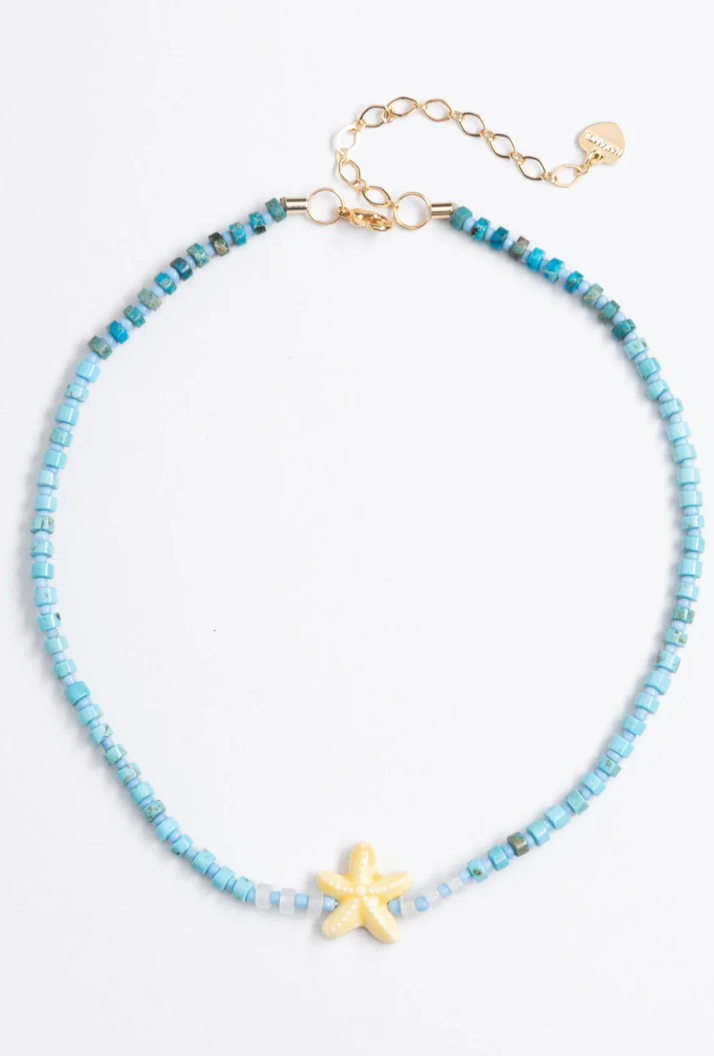 Brighten up your day with this charming turquoise. Showcasing fabulous hues of the ocean and a playful bright star, it will add a touch of whimsy to any outfit. No matter the occasion, you'll radiate joy and happiness with this necklace by your side.