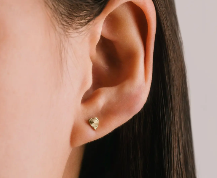 These petite hearts catch the light with fluted texture, delivering a hint of sparkle and a lot of charm in a size that feels sweet, subtle, and ready for daily wear. Fluted Heart Stud Earrings are crafted from 316L stainless steel with 18K Gold PVD for durable color and shine. Waterproof, tarnish proof, and hypoallergenic, they’re comfortable for sensitive ears and built for a grab-and-go routine. Perfect as a meaningful everyday stud for teens to adults, self-gifters, and shoppers seeking a small, versatile earring that layers beautifully. Key Features: • 4 x 5mm heart silhouette with fluted texture for extra shine • Waterproof, tarnish proof finish supports active lifestyles • Hypoallergenic 316L stainless steel safe for sensitive ears • Lightweight scale ideal for second piercings and stacked looks • Easy gift choice with broad age and style appeal Construction & Materials: • Made in: China • Materials Used: 316L stainless steel, 18K Gold PVD • Dimensions: 4 x 5mm • Care: Clean with a soft cloth; store in pouch to prevent scratches