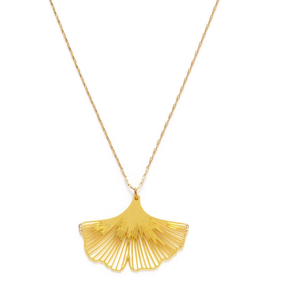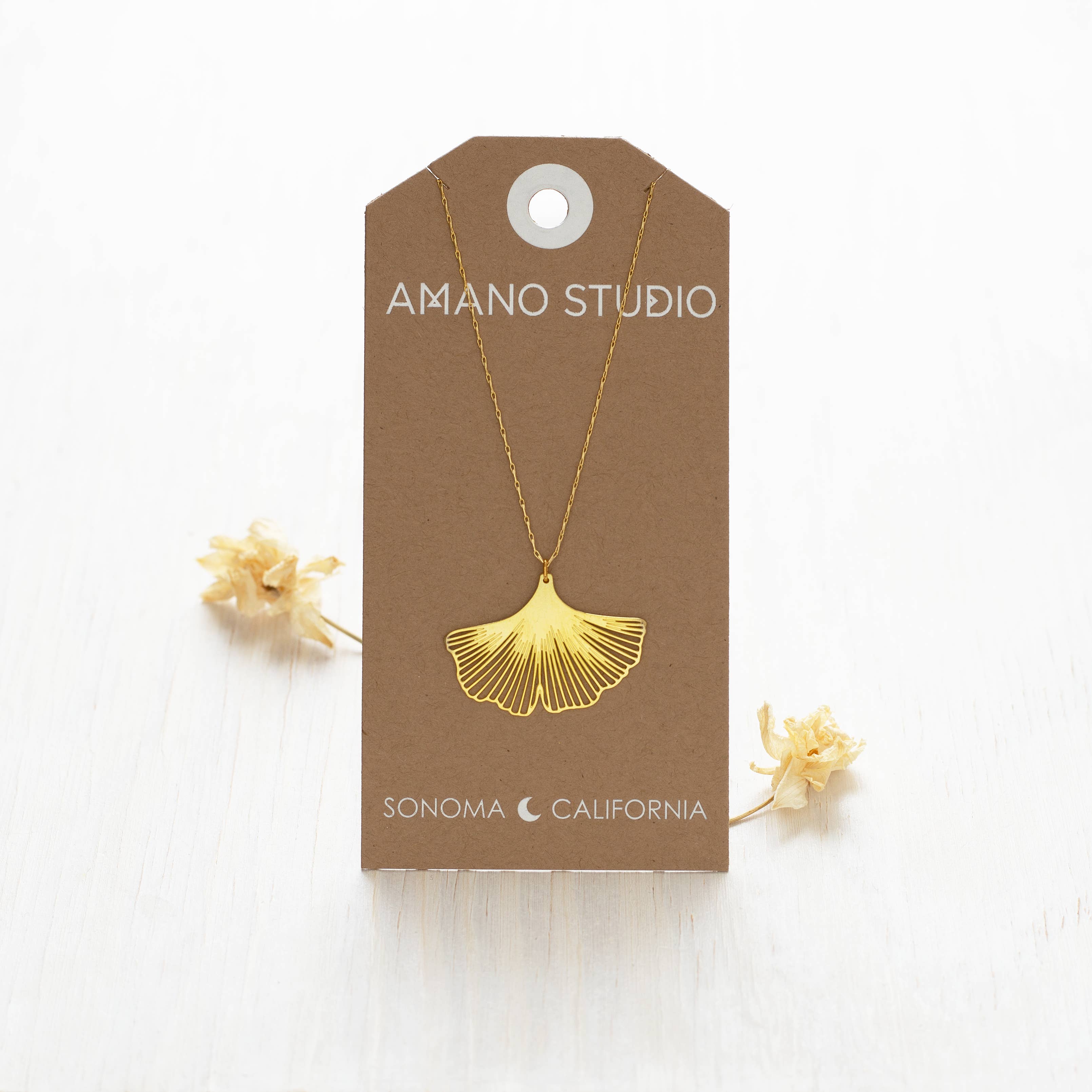 Our customers love the ginkgo leaf! It has been used as a symbol of peace and hope in Asian cultures for hundreds of years. The laser cut brass leaf hangs from a 16" chain with a 2" extender. The chain is 14k gold plated brass + coated to resist tarnish and create a hypoallergenic surface. Designed and assembled in our Sonoma California studio.