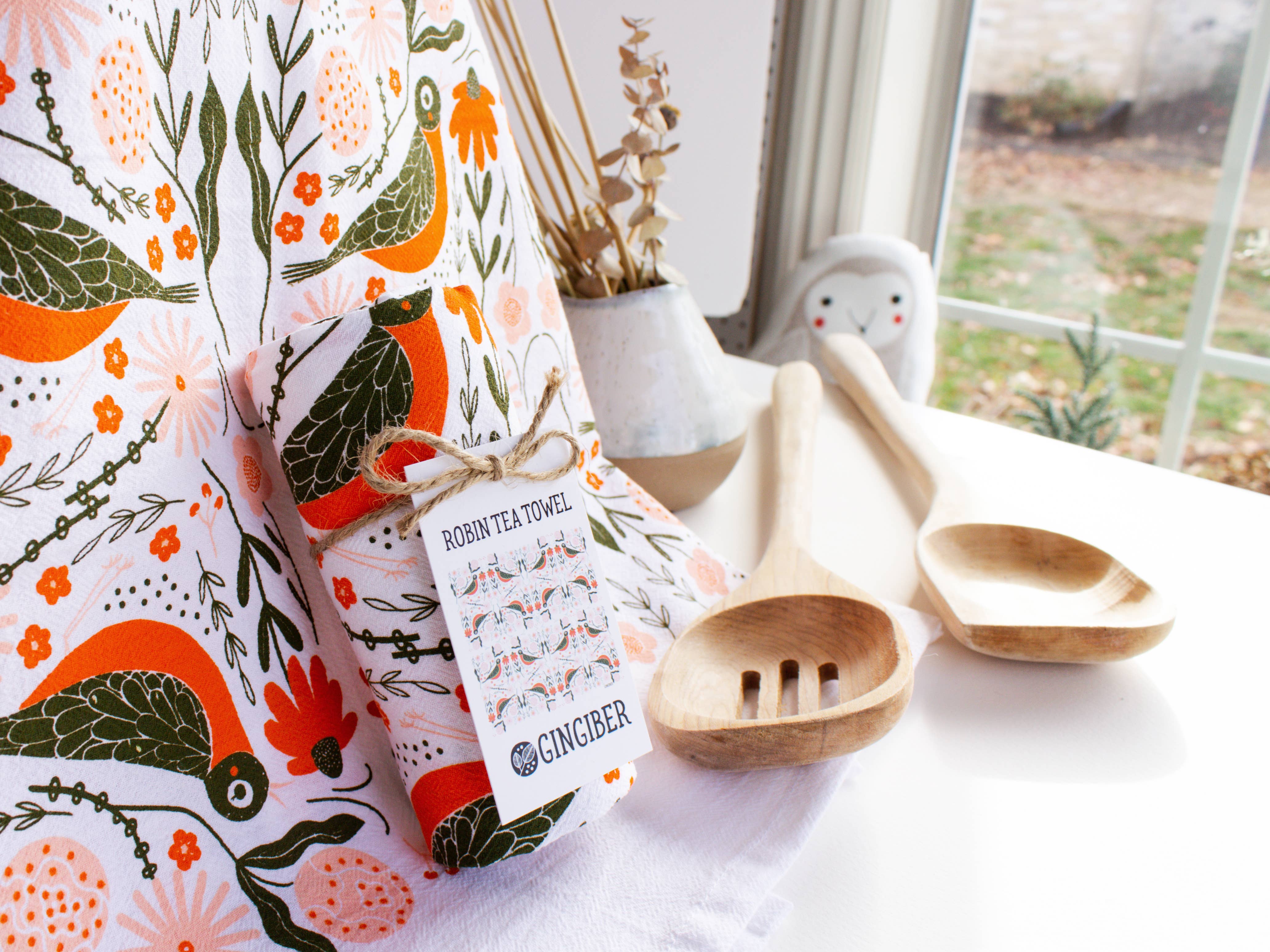 Brighten up your kitchen with Gingiber's high-quality, hand-illustrated tea towels!