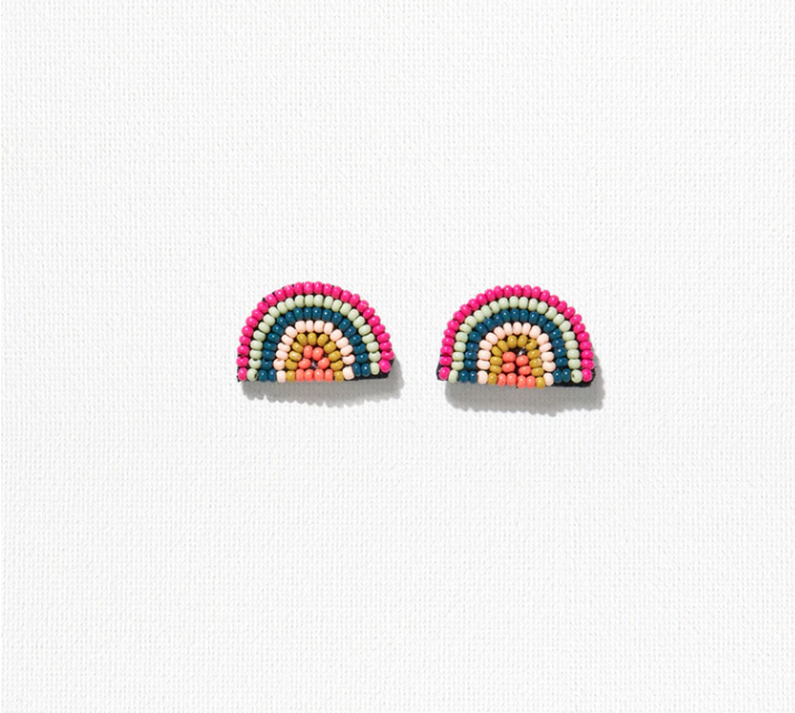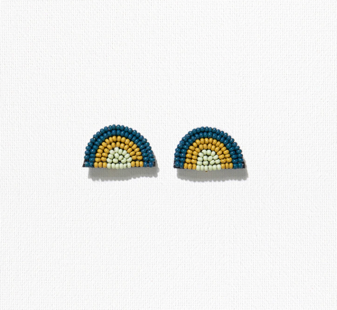 Post earrings for the win! We've taken our signature glass seed beads and given them a whole new look. Perfect for everyday wear, these colorful cuties are the subtle statement earrings you'll reach for time and time again. Peacock, citron, and mint beads are handwoven in rows to bring this cool-toned boho rainbow to life. What better way to add a pop of positivity to your look?