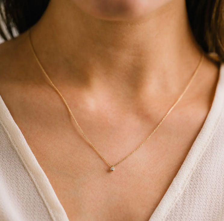 This is the perfect dainty piece to add a little sparkle to your everyday. Our Solitaire Necklace features a crystal suspended on a petite chain. * 15" + 2" Extender * Plated Brass Chain * Crystal