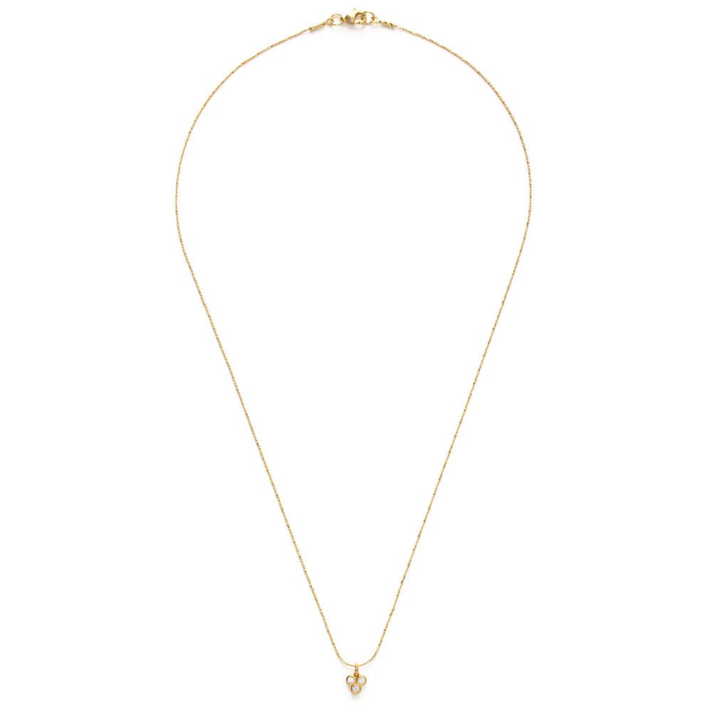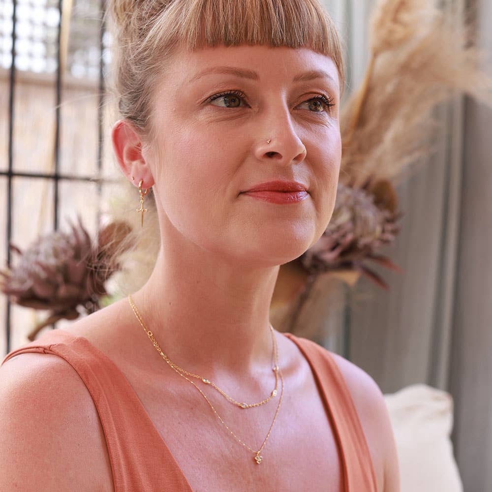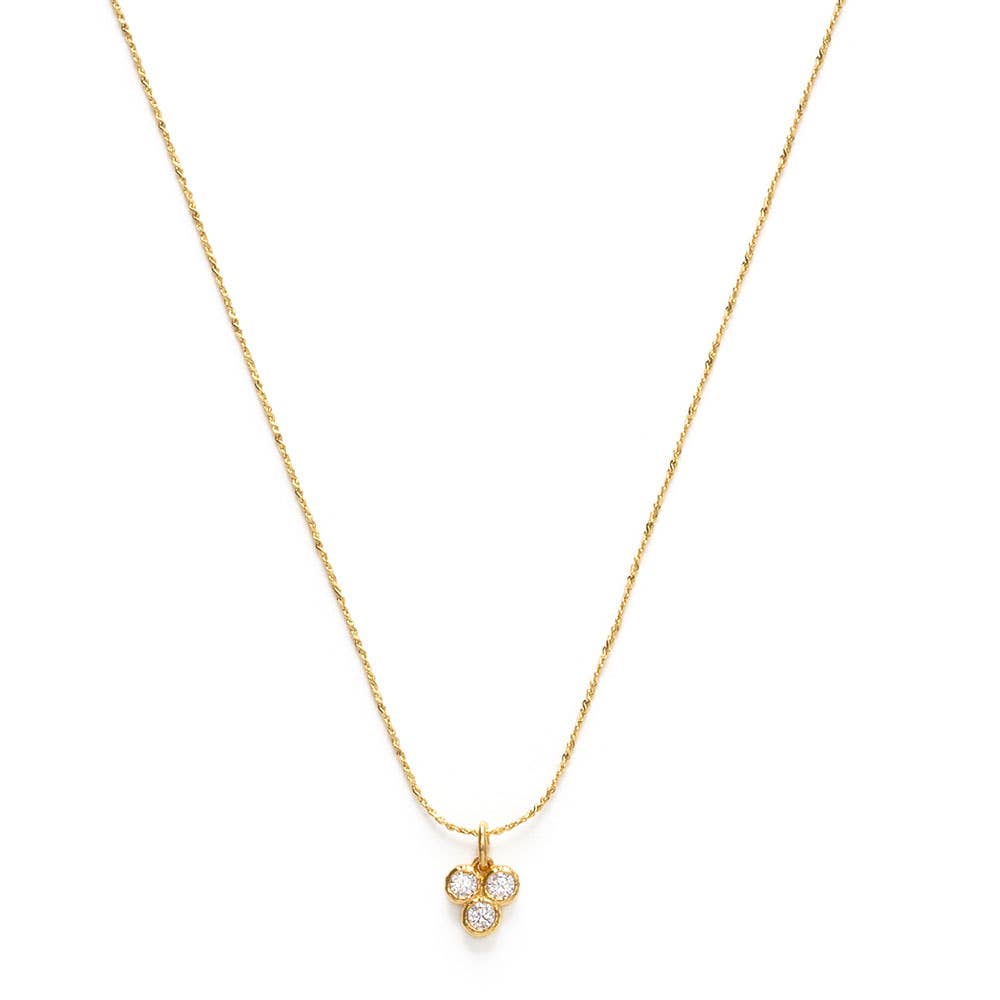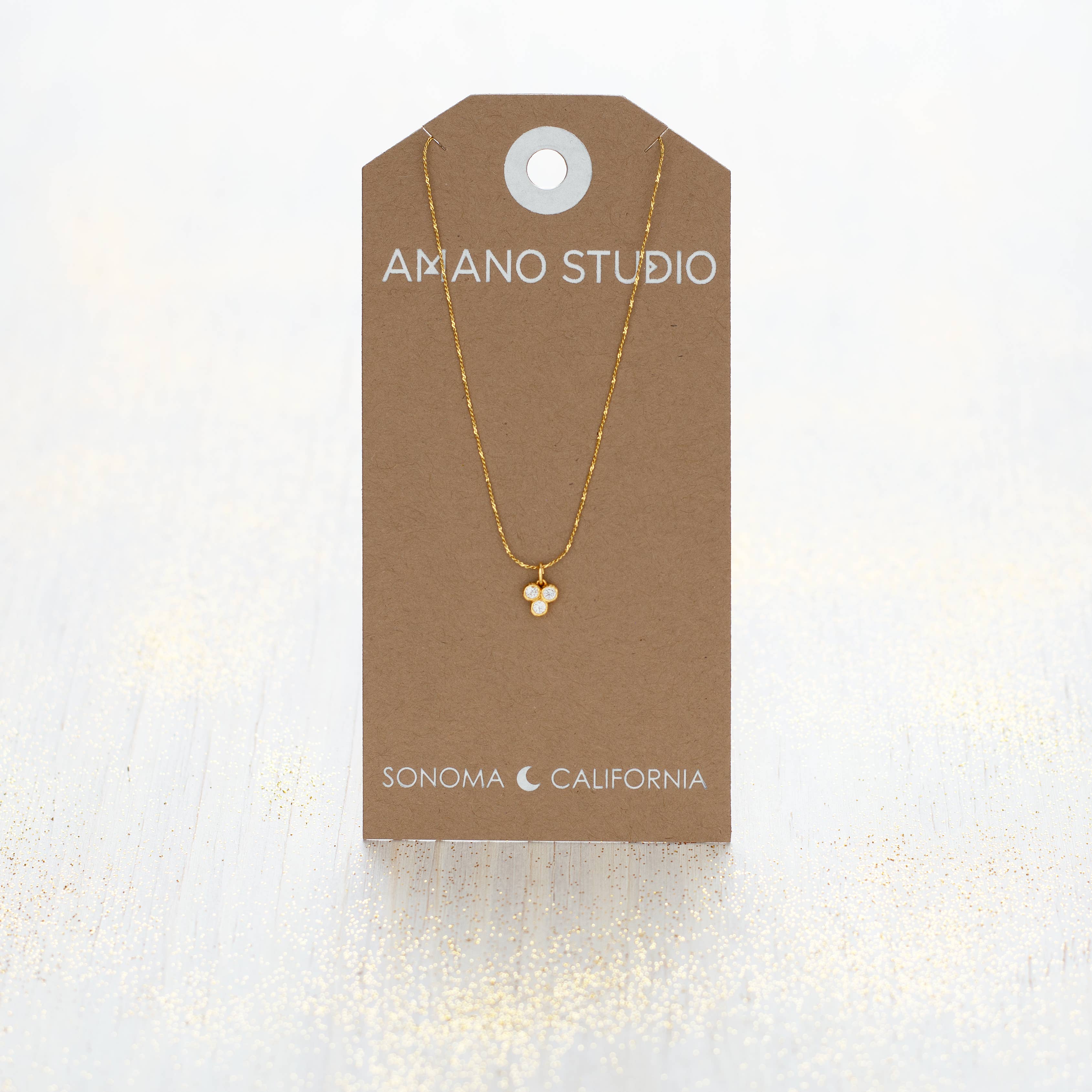The Tiny Triple Crystal Necklace reflects a glint of light, a sparkle to catch the eye. A minimalist statement, this piece layers beautifully with friends. Made of 14k gold plated brass with Czech crystal. The chain is coated to resist tarnish and create a hypoallergenic surface. Designed and assembled in our Sonoma California studio.