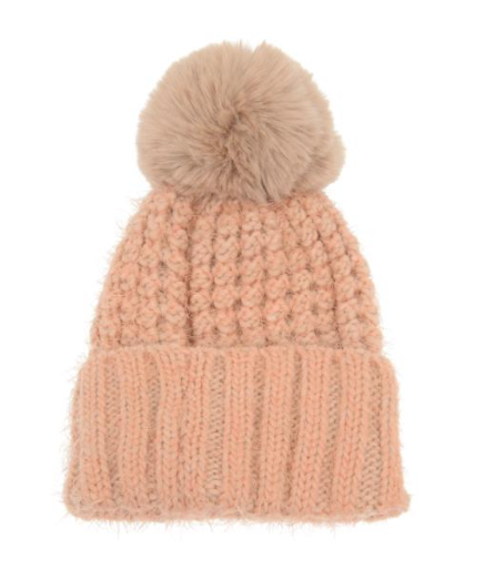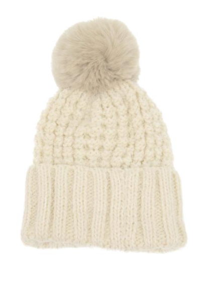 *Waffle Knit Pom Pom Hat*